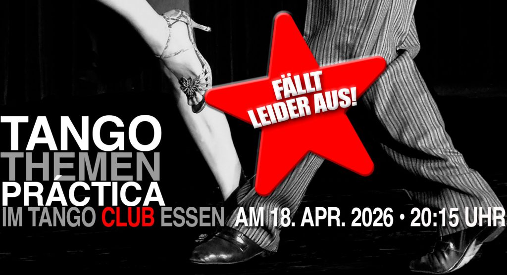 Unsere nächste TANGO CLUB PRÁCTICA findet im April ausnahmsweise wegen der Osterferien erst am 3. Samstag, dem 18. April 2026, ab 20:15 Uhr statt. Bitte weitersagen!